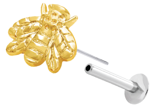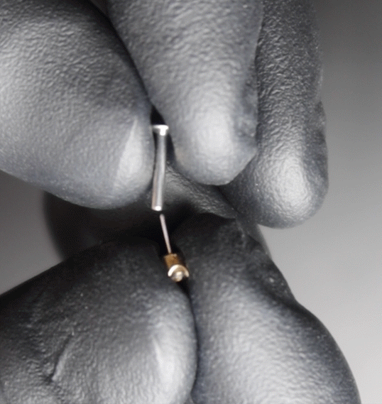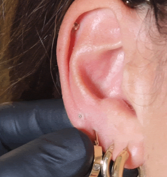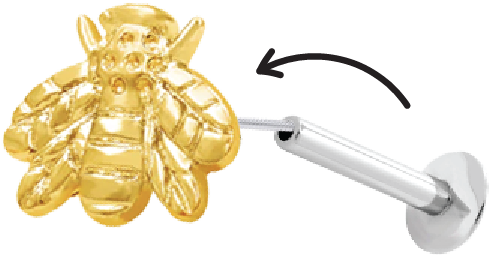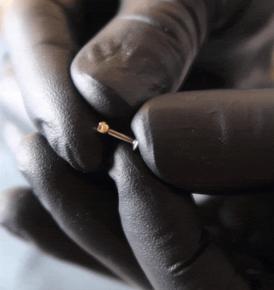 Insert flat back post through back of the ear and line up the earring pin with the hole at the top of the flat back post and squeeze together. You might hear a small click.