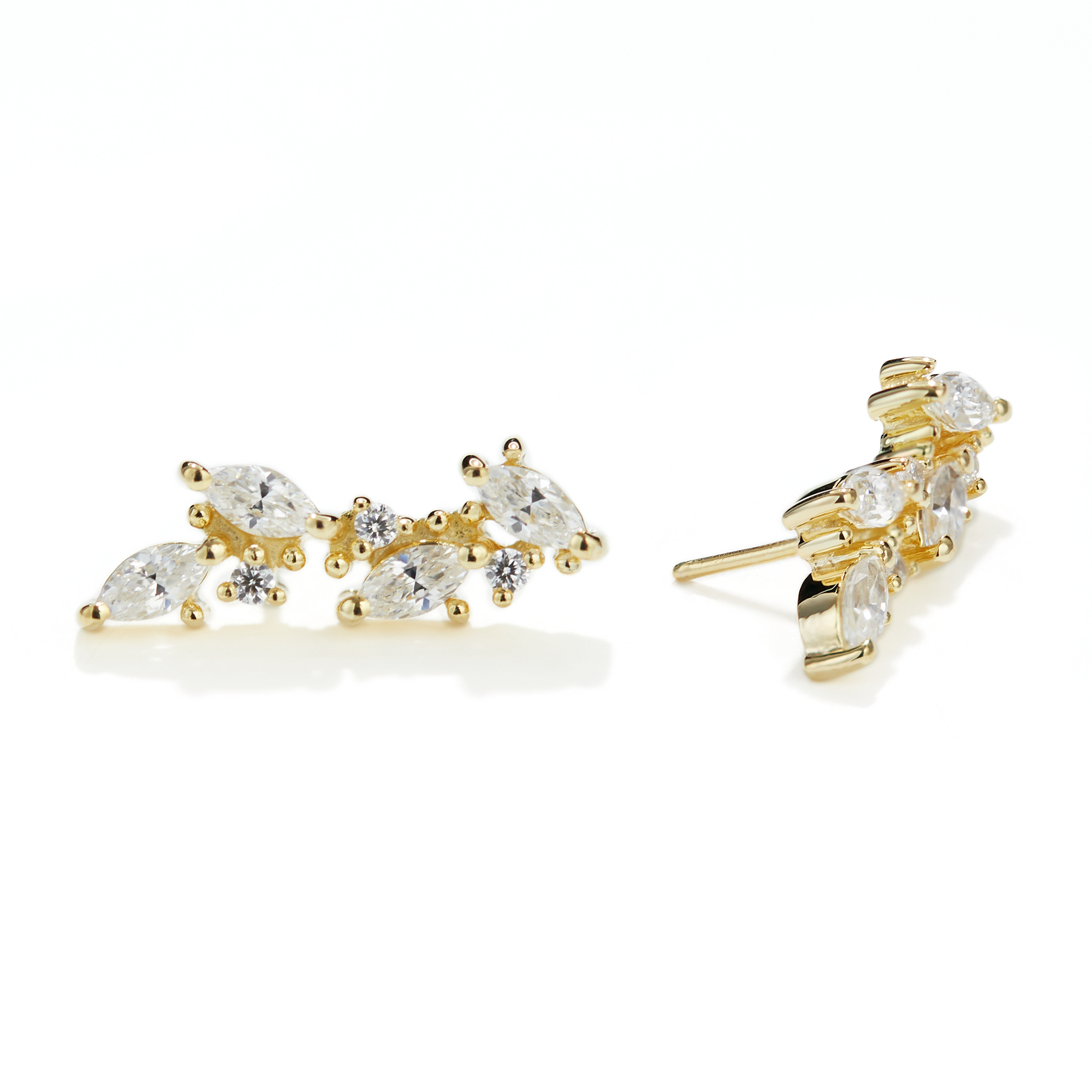 Andreia measures 4mm x 12mm. It is adorned with 3 x 1mm cubic zirconias and 4 x 3x1.5mm marquise cut cubic zirconias.