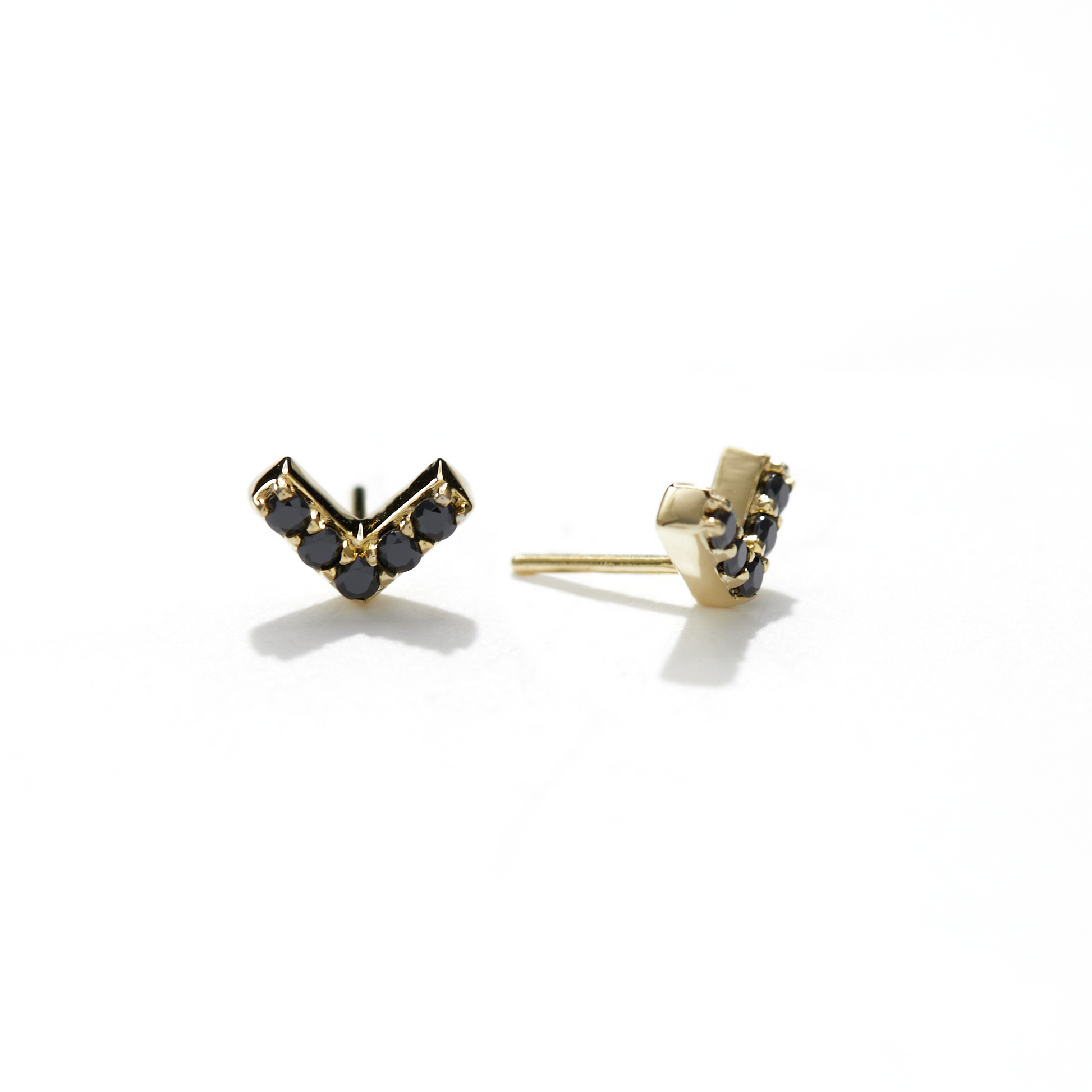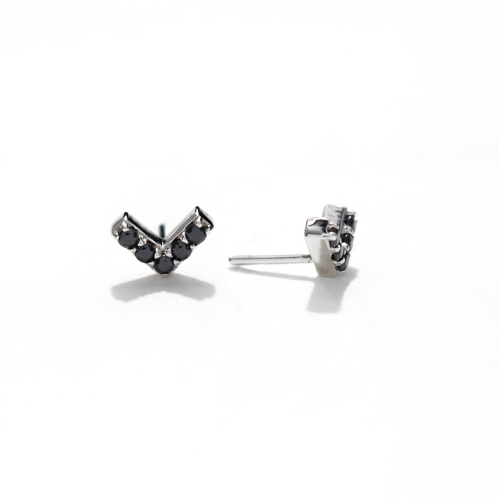 The Chevron with Black Cubic Zirconia piece is pitch black in color and is completely opaque. This sleek, contemporary design features 5 gemstones with 1mm diameter lined in a bold, geometric chevron shape.