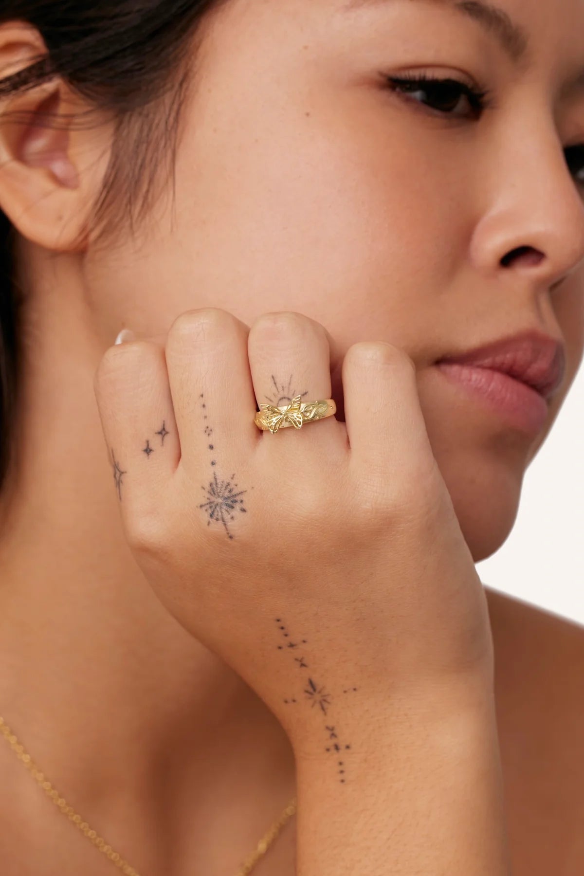 For you and yours. A signet ring with a detailed butterfly at its centre. Made of 14k Gold Vermeil.