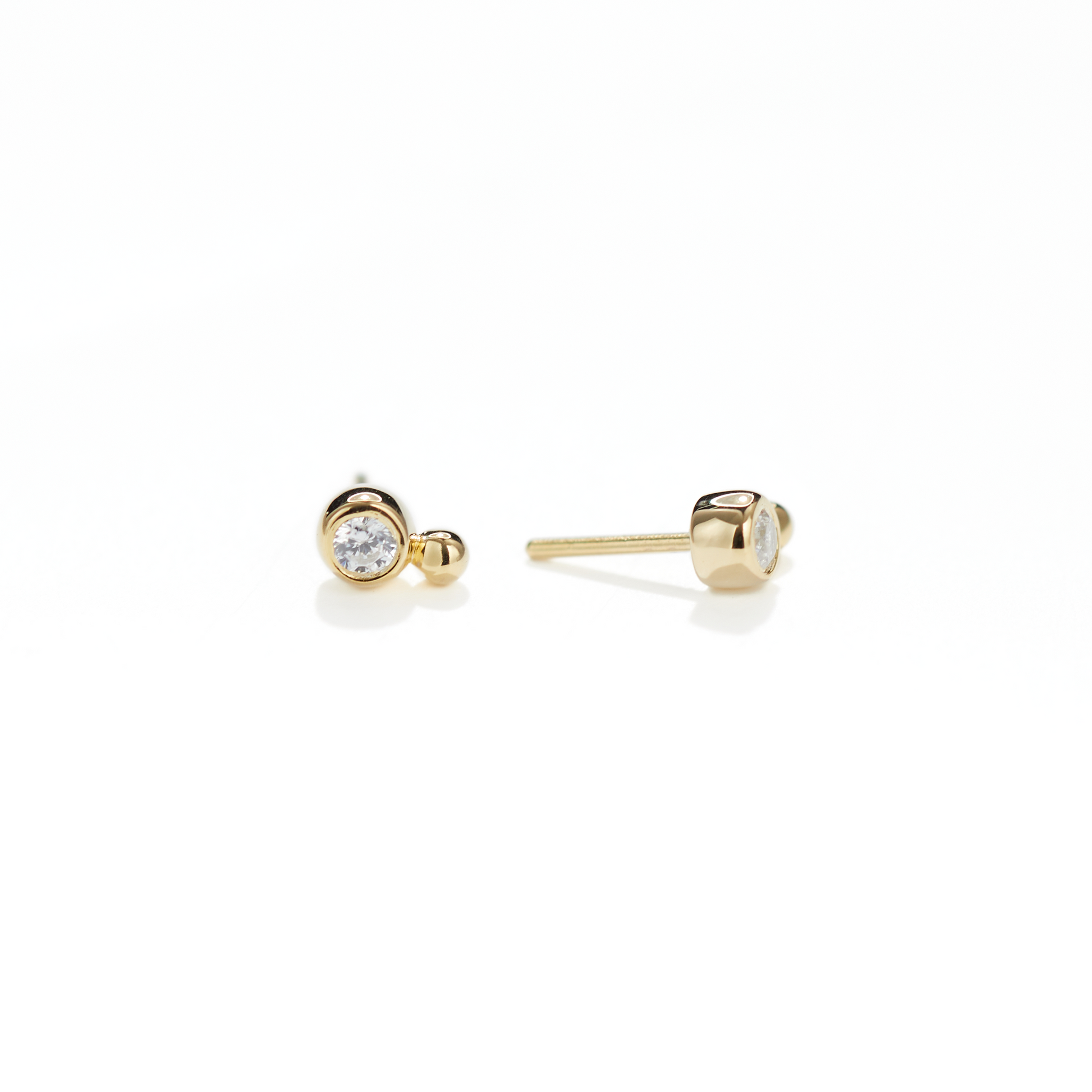 A beautiful 2.3mm x 3.6mm bezel set cz paired with a high polished 14k gold bead.