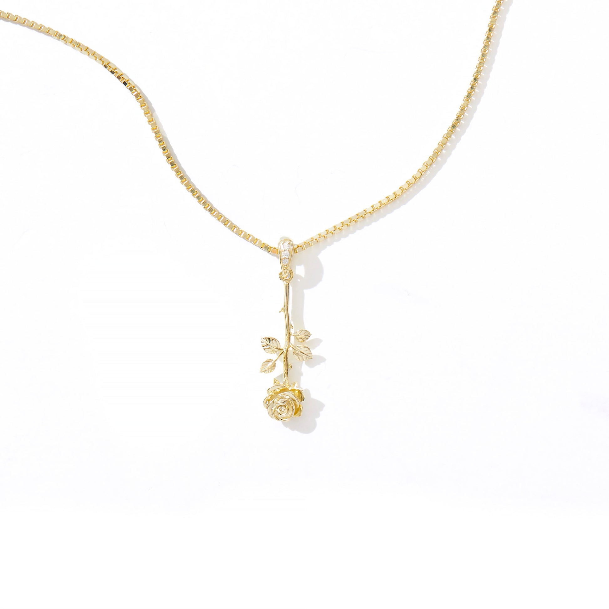For you and yours. A chain necklace with a detailed rose pendant. Made of 14k Gold Vermeil.
