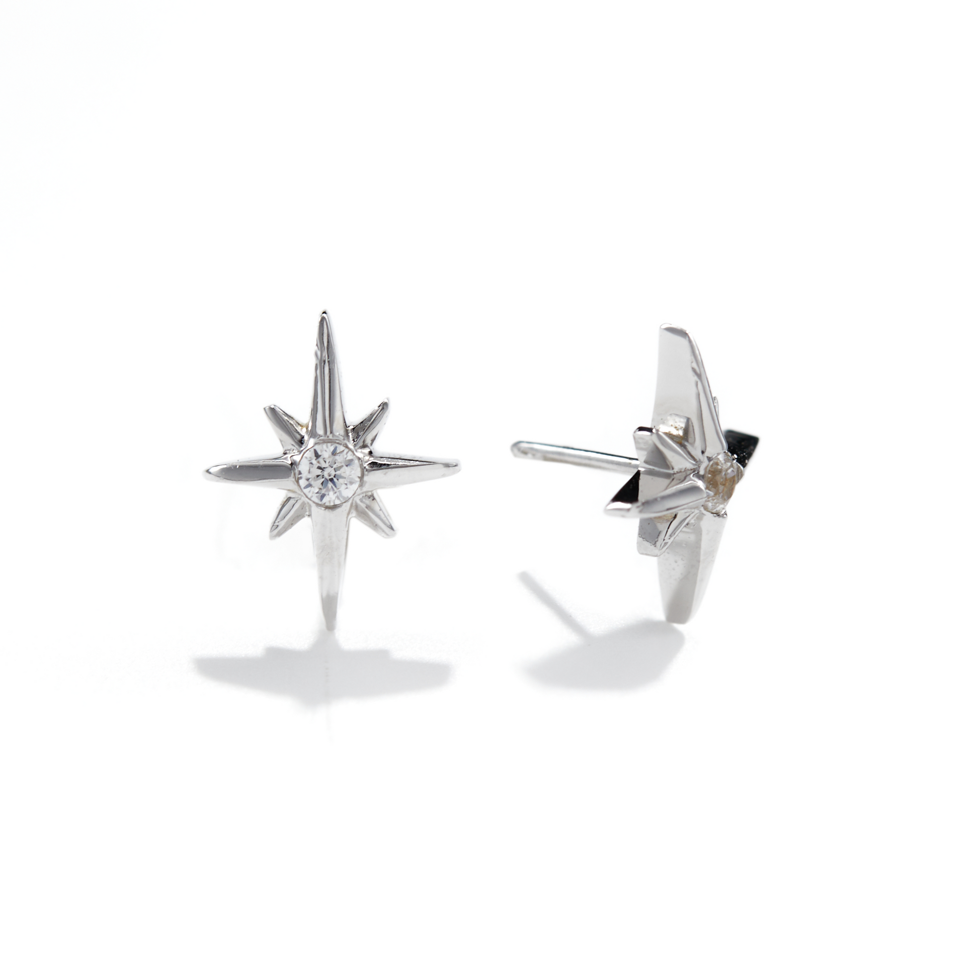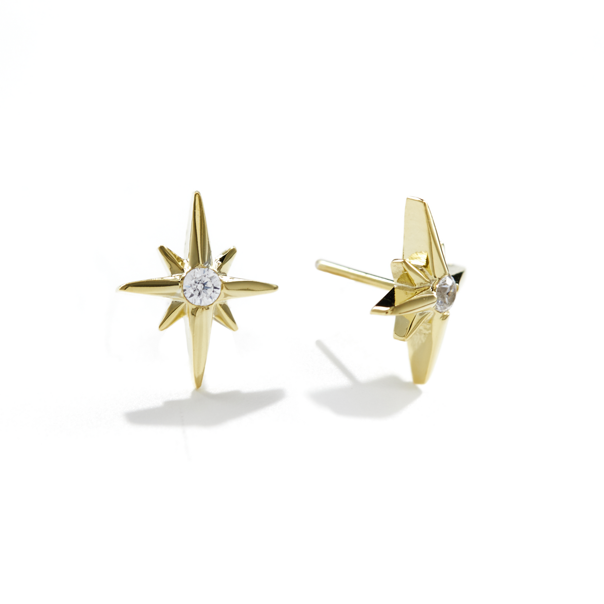 Stella is "star" in Latin. This 14k gold stud shines extra brightly with a cubic zirconia gemstone at its centre.